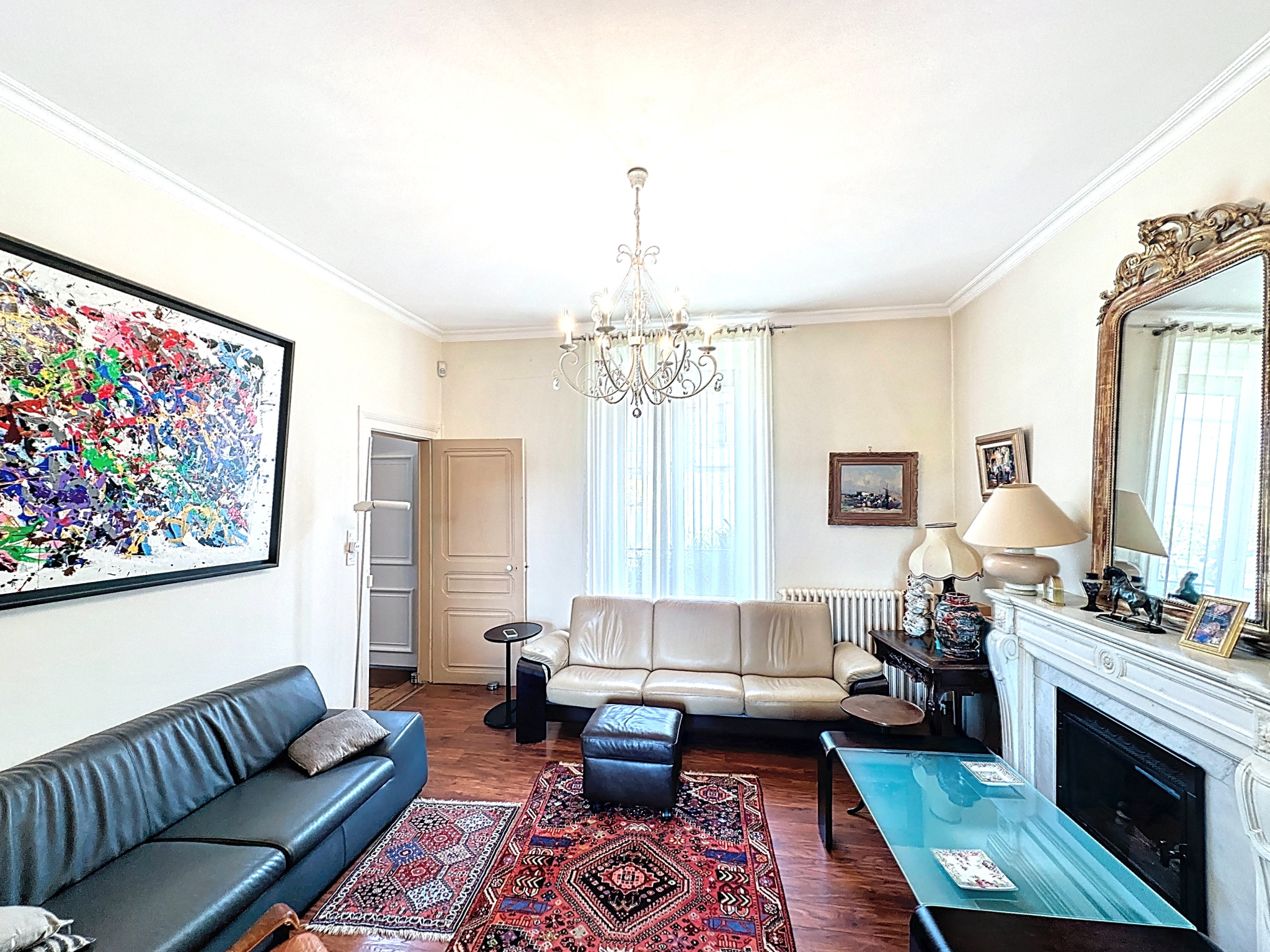 Prestations de qualité : chauffage au gaz de ville, menuiseries en aluminium, alarme, climatisation réversible.
