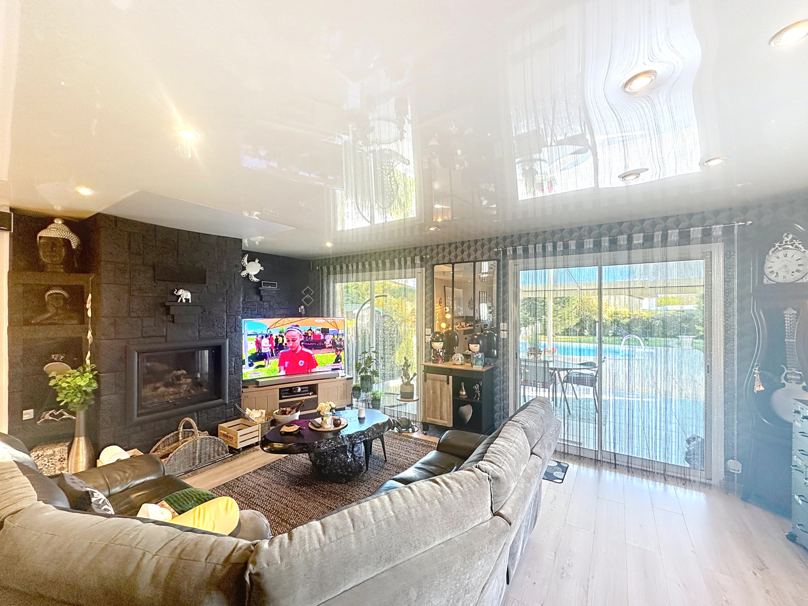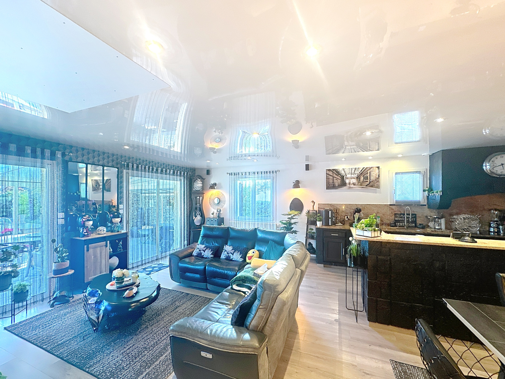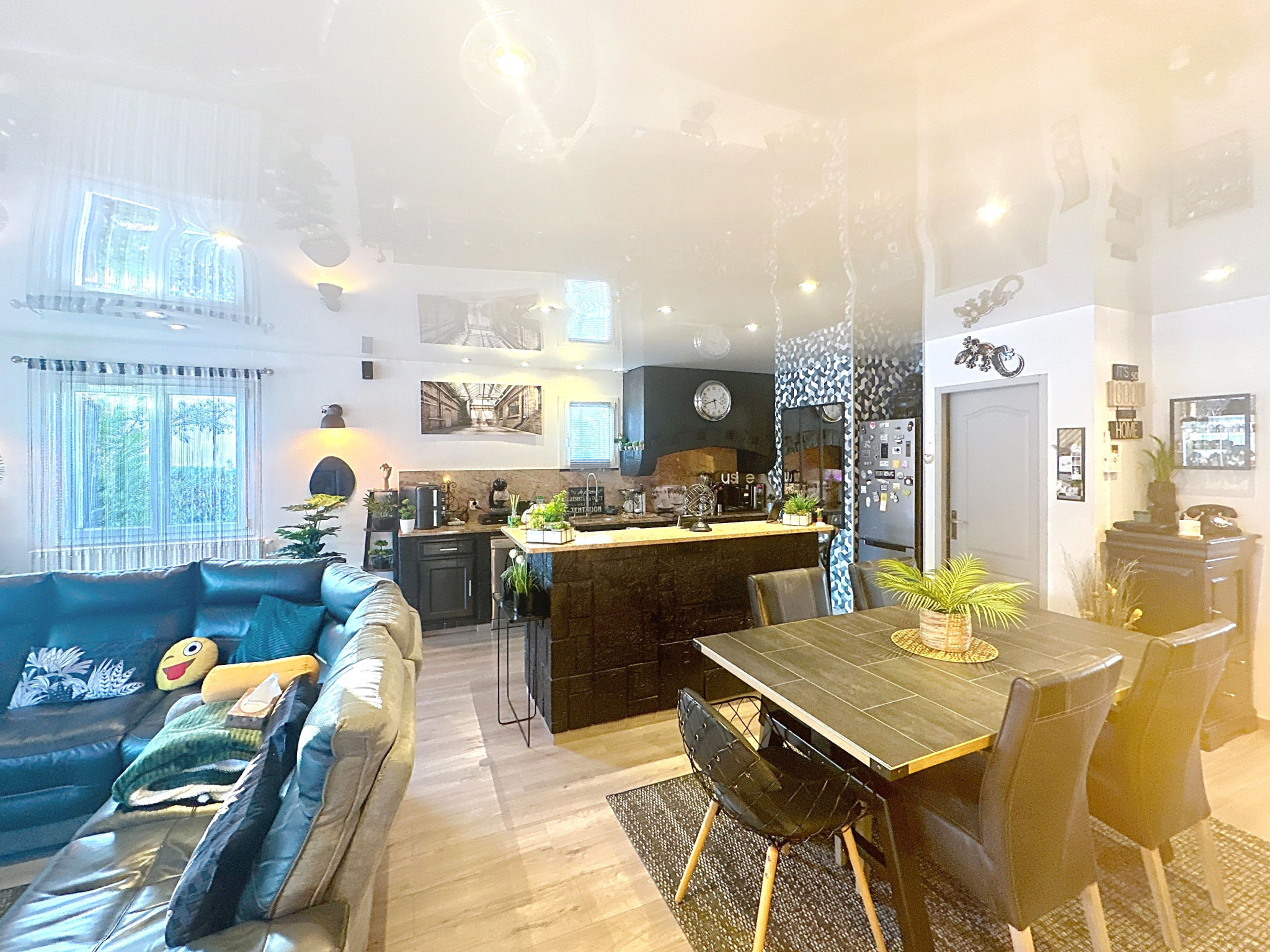 • Une grande pièce de vie lumineuse, avec cuisine ouverte et équipée, donnant sur la piscine.